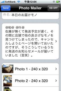 iPhoneからのメール投稿には、画像サイズと画質の変更がアプリ上でできる『PhotoMailer』を使っています。