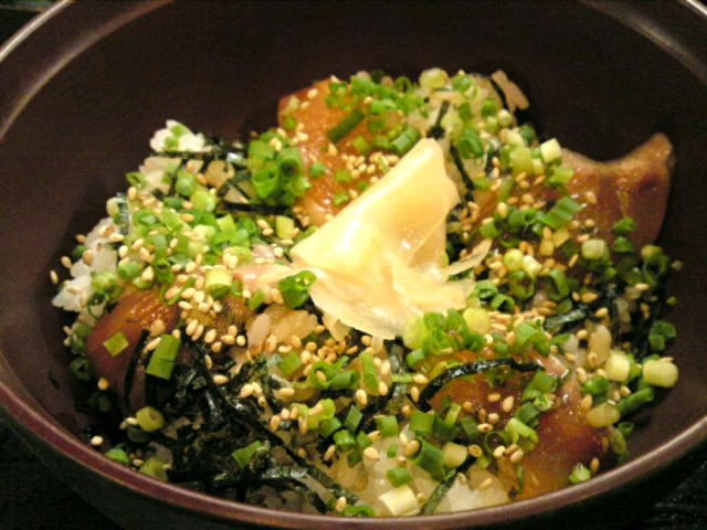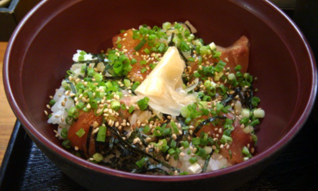 こちらはセットの「漬け丼」。今日はサーモンですって。