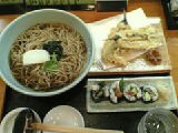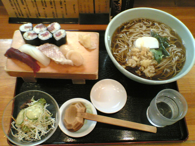 注文したのは、ランチの「Cセット」。「温かい そば/うどん」と「握り」「サラダ」のセットです。麺の量が選べるので、、、300gという事ですね(笑)。