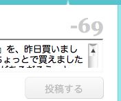 マイナス表示(字数オーバー)では、「投稿する」というボタンが薄い色に鳴ったままで、押す事はできません。