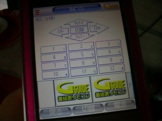 いつも通りのオチだなぁーと思っていたら、検索で「auの端末がテレビリモコンになる」という事を見つけ、EZアプリで動いているので、「きっとウチのソニーエリクソン(一応国産)でもできるに違いない!」と思いやってみたところ、できました(嬉)!!