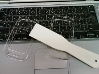 外装外しの工具も持っていないので、偶然(?)引き出しに入っていたこんなヘラを、端末とケースの間に入れて、爪の噛み合わせを解きました。