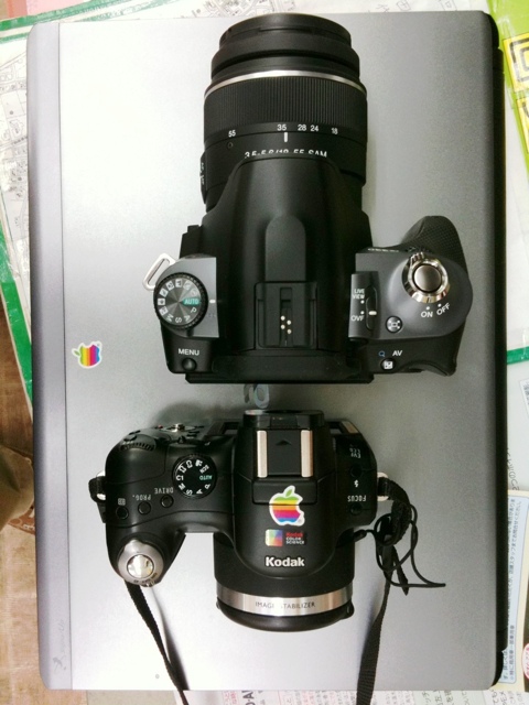 今までメインに使っていた、コダック『P850』とソニー『α330』を並べてみます。背景汚くてごめんなさい(苦笑)。