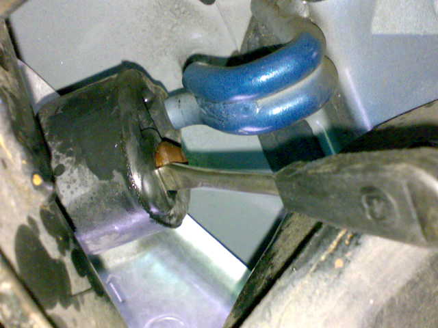 このゴムブッシュ(マフラー接合部から一つ目)からステーを引き抜けずに断念したのですが、今回はマイナスドライバーを突っ込んでみたり、色々と苦闘してみました。