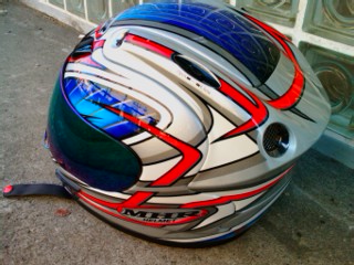 せっかくのカメラケータイも、このサイズにするとちょっと画が寂しい気もしますね。でも、ヘルメットの蛍光っぽい赤いラインは、やっぱりこのくらいの方が忠実に見えるかも。