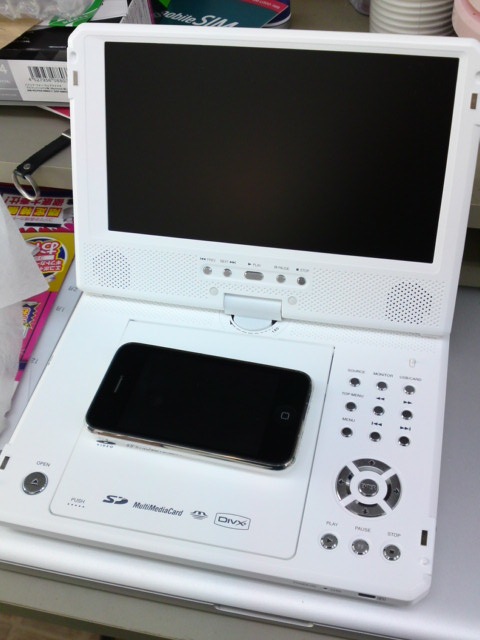 今まで使っていたポータブルDVDプレーヤーが動かなくなってしまったいたので、しばらくはMacBook Proで代用していたのですが、何か作業をしていると使えないので、安売りしているのを見つけ、買っちゃいました(^^)