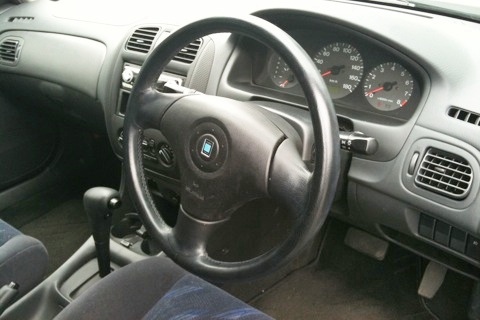 3速ATです。なぜか、革巻きハンドルです(笑)。インプレッサにも、こんなハンドル付いたのありましたよねぇ~。
