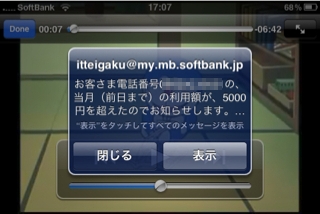 すっかりそんなものの存在すら忘れていたのですが、突然来ました「一定額メール通知」。