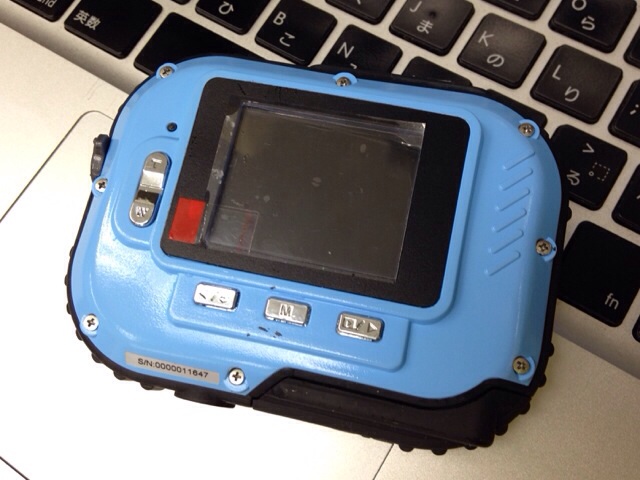 全体的な雰囲気と、筐体前面に書いてある『easy pix AQUA W318』というネーミングから、「きっと防水だろう」と思い込み、、、