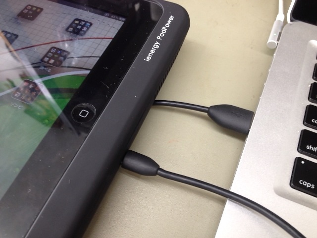 同期を目的に接続した場合、ケーブルを抜いた後にケース電源ボタンを押して給電を切らないと、そのままiPadをケースの電池で充電することになるので注意。